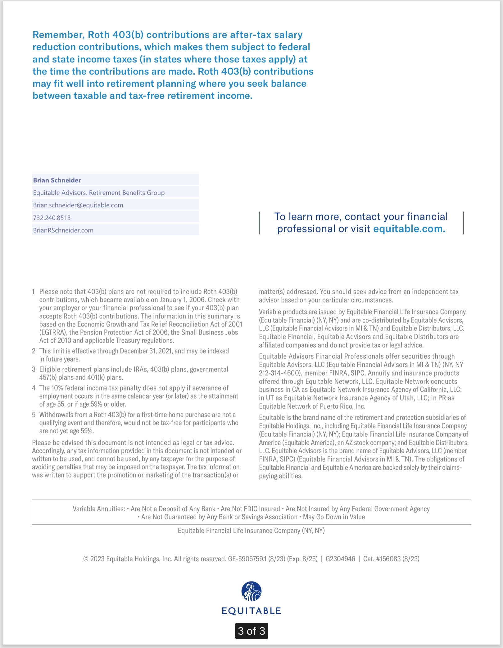 Facts: NJ BOE Approved 403b ROTH and Traditional Contributions In NJ Brian Schneider 732-240-8513